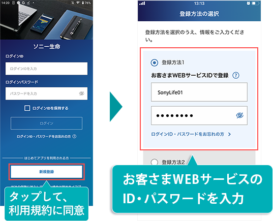 ソニー生命 アプリのトップページから専用ページにアクセス